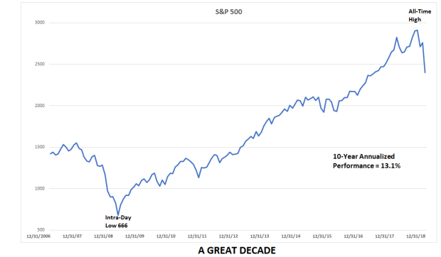 Despite the December 2018 carnage, the current decade proved to be very respectable. This is especially true when we think back to the intra-day low of 666 (yes, 666) in March 2009. In reality, 2018 was the only negative year in the last decade for the S&P 500. Moreover, the 10-year return was an above-average 13.12%.
