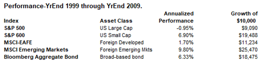 Emerging Mkts: Emerging market stocks are another asset class that has trailed in recent years. Emerging market stocks are more volatile but offer better growth prospects than developed markets based on a younger population and a growing middle class. they are cheaper than developed markets, they offer diversification benefits and they look poised for good longer-term performance.